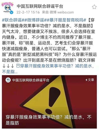 2022年2月17日,微博账号“互联网联合辟谣平台”(国家网信办主办)转发了辟谣文章,上海体育学院运动科学学院副教授郭黎表达了几点看法:
