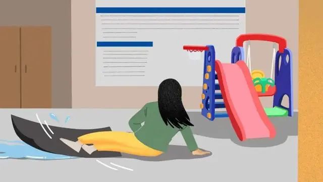 作为儿童设施的滑梯和脚垫客观上并未增加小区大厦一楼大厅的危险性,购置和放置的行为也并不必然导致本案类似事故的发生。脚垫被踩后滑行的主要原因在于物业公司未能有效履行好安全防范义务、消除地面湿滑的安全隐患。