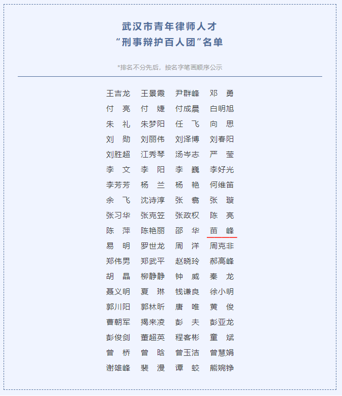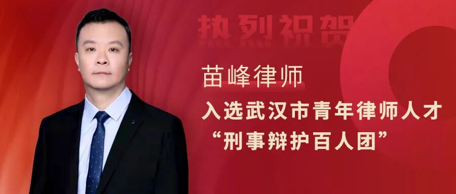 维思德动态丨热烈祝贺我所合伙人苗峰律师荣登武汉市青年律师人才“刑事辩护百人团”榜单