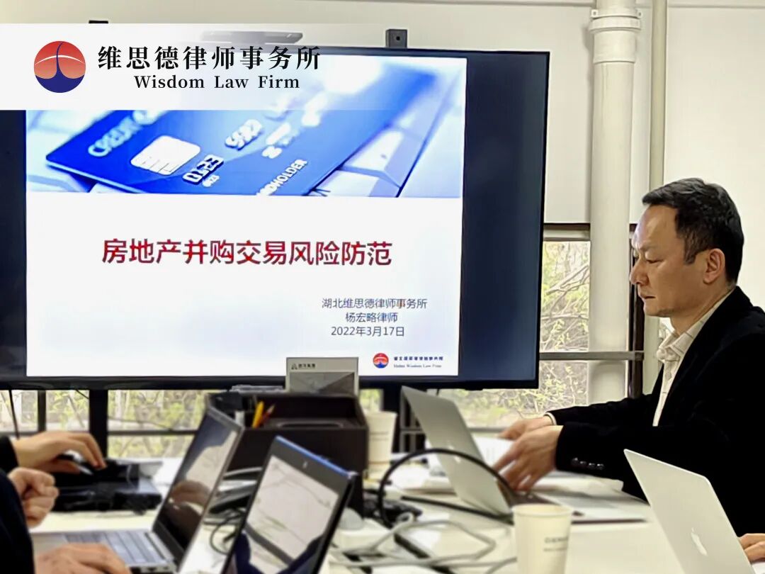 2022年3月17日下午,我所高级合伙人杨宏略律师、宋程洲律师及资深律师杨啸受邀赴远洋集团华中开发事业部参加“房地产并购交易风险防范”交流分享会。