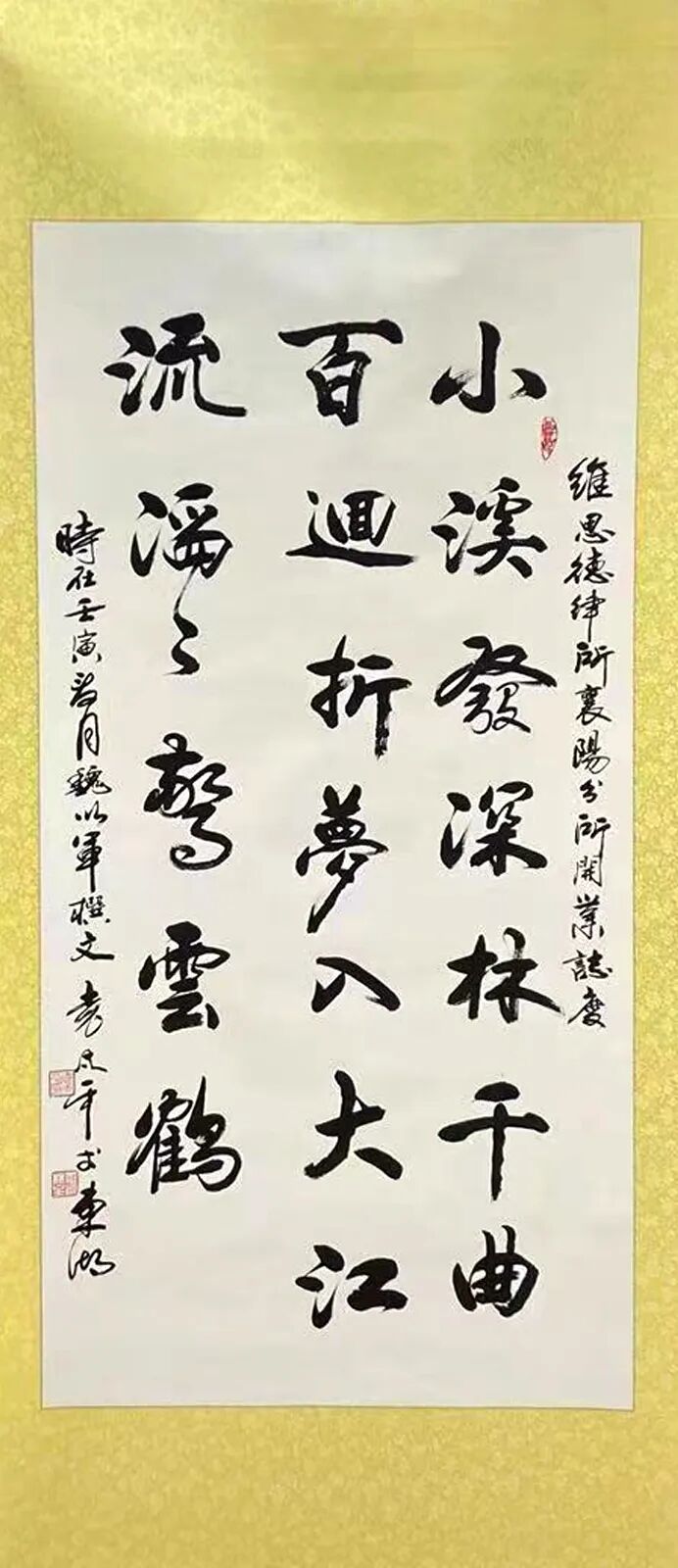 最后他以自撰的诗文挂幅《小溪》献给分所和所有来宾:“小溪发深林,千曲百回折。梦入大江流,滔滔惊云鹤。”