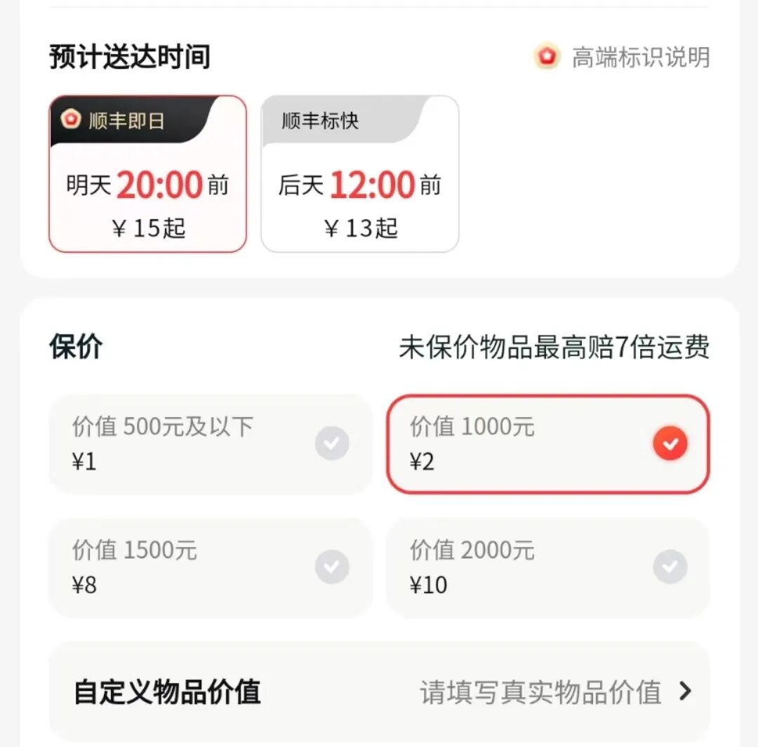 关于保价后的赔偿,快递公司也提供了不同的保价梯度供寄件人选择。如本次热点事件中,夏女士仅购买了2元的保价服务,对应的保价限额为1000元。