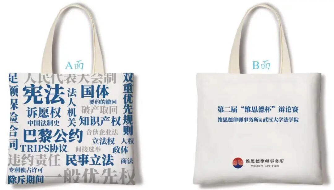 欢迎文末留言,为2023年“维思德杯”辩论赛决赛或参赛队伍送上真挚的祝福,留言点赞量前10名,将获得由湖北维思德律师事务所与武汉大学法学院联名定制周边礼品一份。