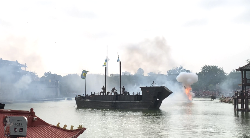 繁华的清明上河园“市井街头”满是“宋人”穿梭而行。我们欣赏了《大宋·东京保卫战》、《王员外招婿》、《气功喷火》、《民俗绝活》等精彩演出。《大宋·东京保卫战》再现金军攻入金水门,开封城存亡危机之时,大宋军民誓死捍卫家园的战争场景,整个表演炮火连天、水花飞溅、惊险刺激。