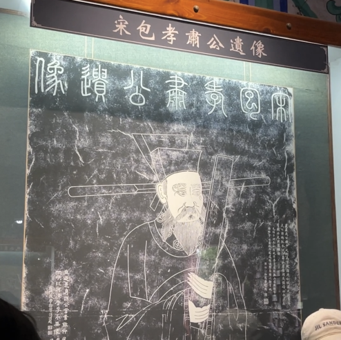 包公祠布局规整,庄严肃穆,大殿内包公坐像,威严端庄。包公石刻像拓片逼真再现了包公的风姿。《开封府题名记》石碑上刻有北宋183位开封府尹的姓名和上任年月,惟有包公名下出现了一条深深的指痕,可见人们对于包公的敬爱。