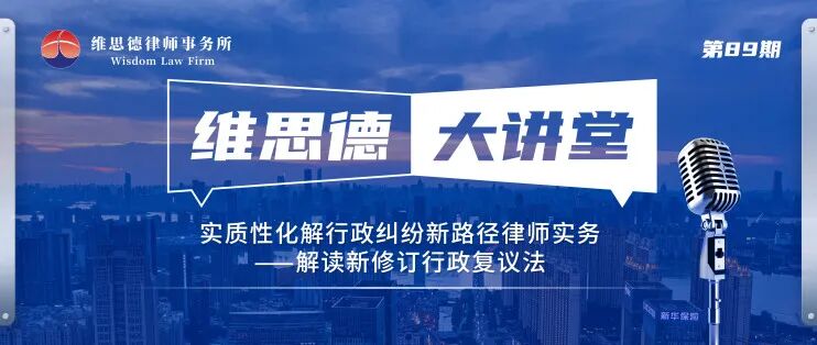 维思德大讲堂丨实质性化解行政纠纷新路径律师实务 ——解读新修订行政复议法