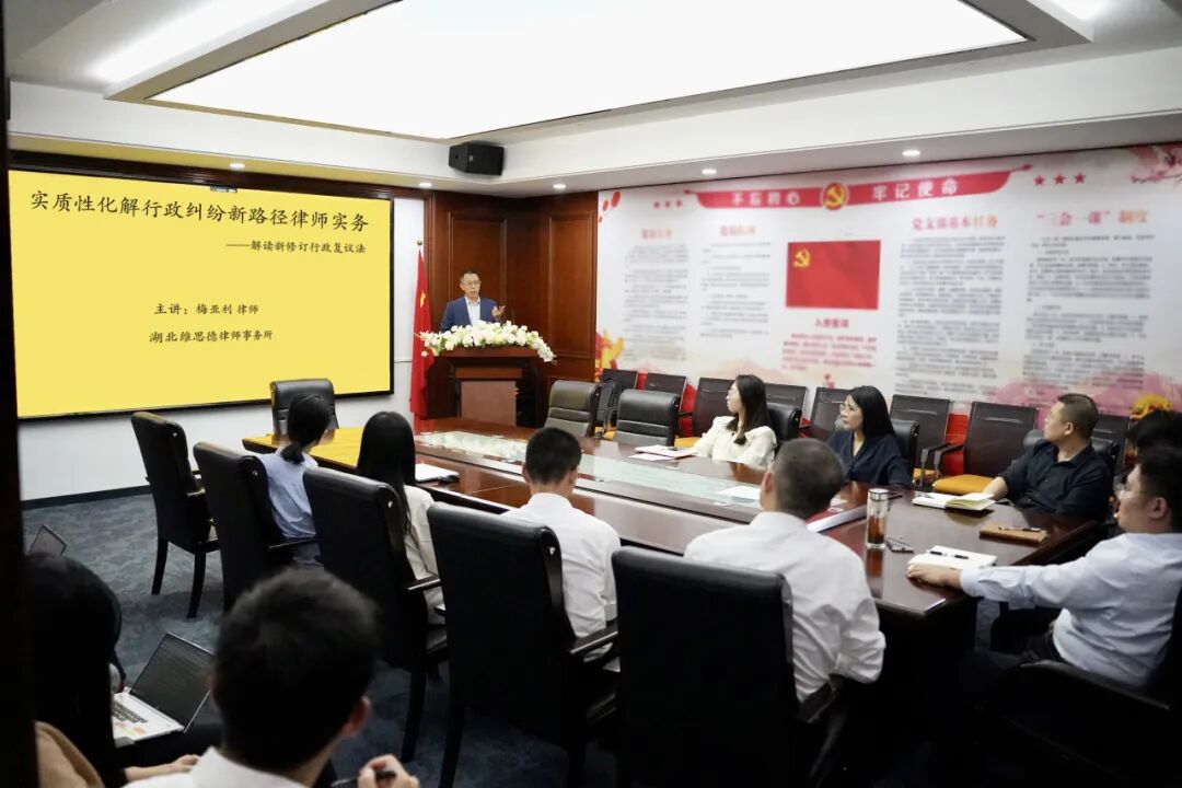 2023年10月24日下午,第89期维思德大讲堂如约在律所大会议室举行,本期由我所劳动与行政法专业领域资深律师梅亚利主讲。梅律师以“实质性化解行政纠纷新路径律师实务——解读新修订《行政复议法》”为题,结合自己多年办理行政案件的实务经验,展开此次讲座。