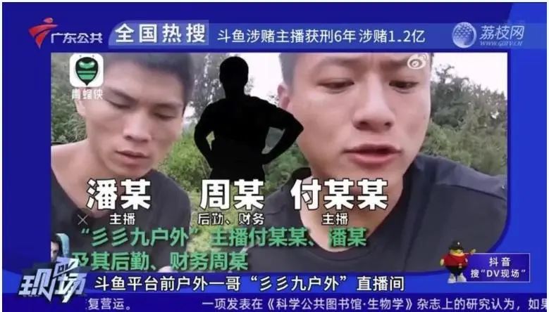 2022年底,前斗鱼知名主播组合“彡彡九户外”被认定利用直播平台开设赌场“吸金”近1.2亿元,构成开设赌场罪。