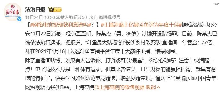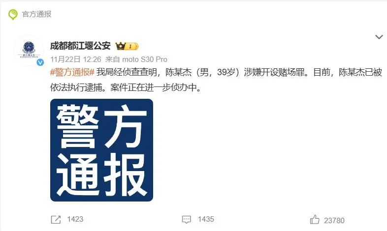 近日,曾任国内直播平台斗鱼公司CEO、董事会主席的陈某杰因涉嫌开设赌场罪,被都江堰公安依法逮捕的消息引起了广泛关注。