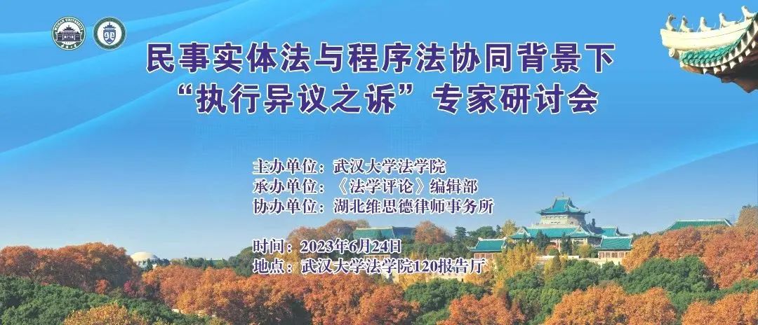 6月24日,民事实体法与程序法协同背景下“执行异议之诉”专家研讨会于武汉大学成功召开。本次研讨会由武汉大学法学院主办,《法学评论》编辑部承办,我所协办。我所魏以军主任,高级合伙人喻俊、卢宏钟、尹爱国律师,律师代表谢肖肖、李玄、彭文浩、陈进、王倩倩等参与了本次研讨会。