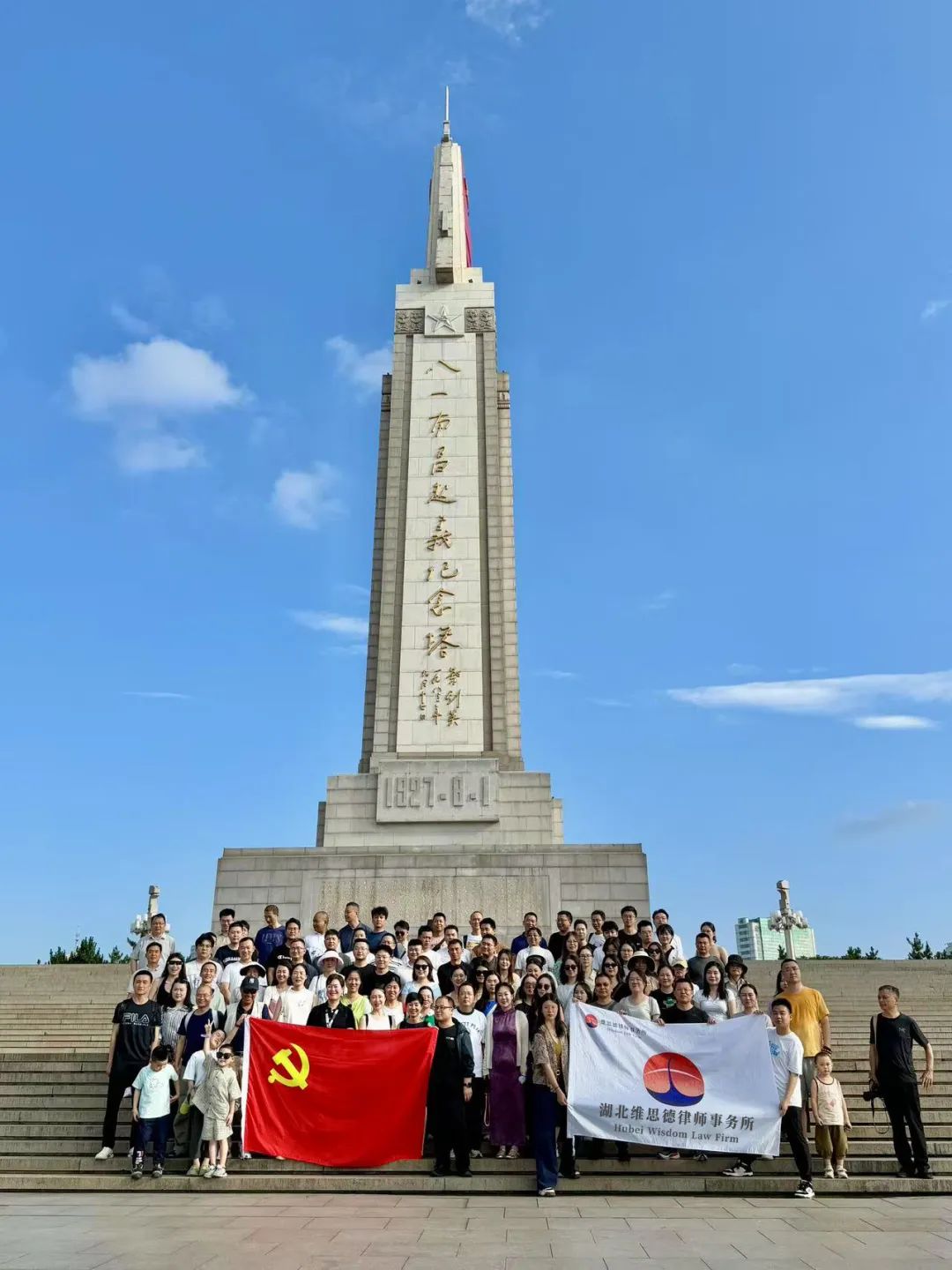 南昌八一广场是这座英雄城市的地标,承载着厚重的历史记忆。广场中央的八一南昌起义纪念塔庄严肃穆,傲然矗立,全体维思德人静静地肃立在它面前,深情缅怀革命先烈。《八一宣言》里“为民众谋利益”的炽热精神,与“人民律师”的定位紧密相连、一脉相承。它激励着维思德人铭记历史长河中的那些英勇与牺牲,不忘初心,以如磐的信念坚定法治信仰,在法治的道路上奋勇前行。