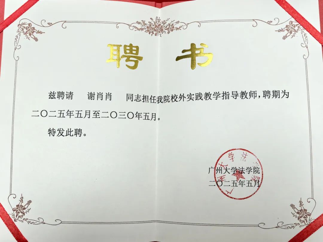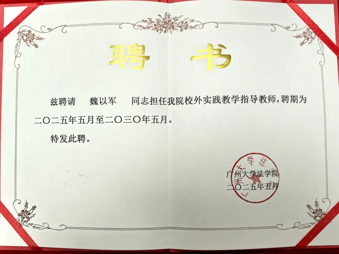 维思德(深圳)律所与广州大学法学院共同签署了《广州大学法学院校外实习(实践)教学基地建设协议书》,建立实践教学合作关系。广州大学法学院聘任律所魏以军主任、高级合伙人喻俊律师、合伙人谢肖肖律师、涉外法律事务部部长喻冰清律师、深圳分所执行主任余辉律师以及合伙人潘经锐律师为广州大学校外实践教学指导教师,标志着双方在实习(实践)教学基地的共建和法学学子联合培养等方面迈入新的阶段。未来,双方将围绕人才培养、学术交流、案例研讨等领域展开深度合作,推动法学教育与法律职业的紧密衔接。